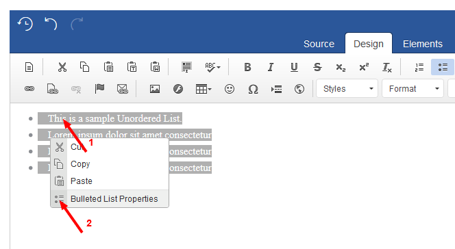 Joomla! content editor’s provide different types of lists to choose from when constructing your page. The most commonly used are ordered and unordered lists. Choosing what type of list to use, or to use a list at all, comes down to the content at hand and what is the most meaningful choice, for displaying the content of your document. Lists are commonly formatted as bullets or numbers when listing items.