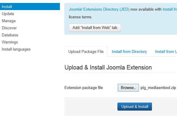 Under 'Upload Package File' click on 'Browse...', select the file and click on 'Upload File & Install'.