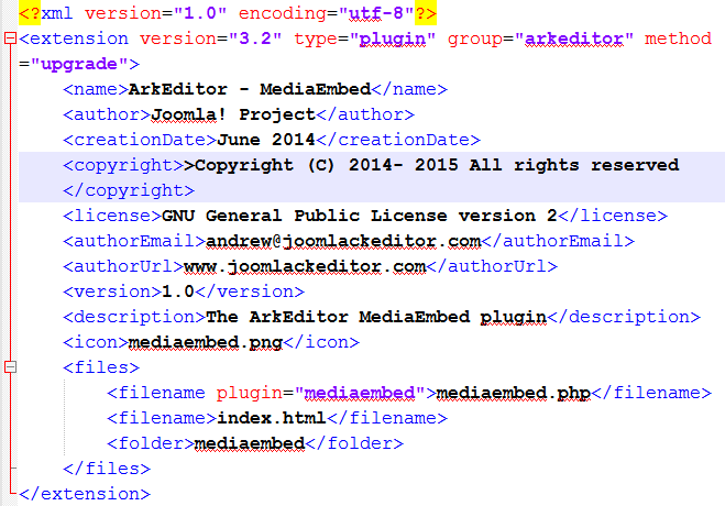 - Open up an Ark Editor plugin that you have installed, for example the ‘Mediaembed’ plugin.