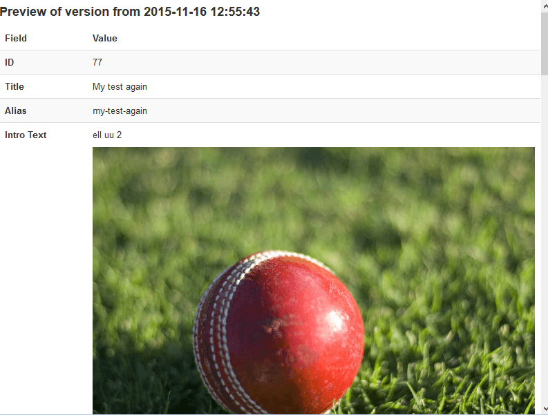 This element will contain a list of field elements where each one contains the name of the database table field name you want Joomla to display in the version manager preview screen. Please see image below |